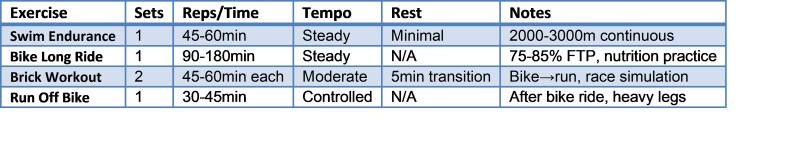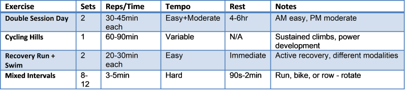Target: Multi-discipline endurance | Frequency: 6×/week | Time: 70-120min